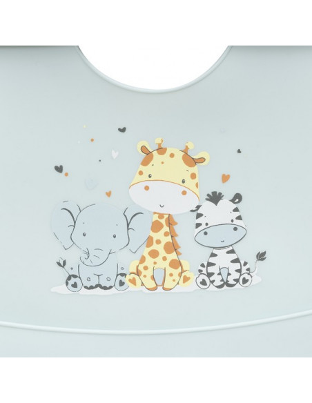 Con un diseño adorable de un grupo de animalitos sentados sobre fondo en color liso, este babero combina funcionalidad y estilo. Es extremadamente flexible, por lo que se puede doblar fácilmente y ocupa poco espacio, ideal para llevarlo en el bolso cuando salgas de casa. Además, al estar libre de BPA, PVC y ftalatos, puedes estar tranquilo sabiendo que es completamente seguro para tu pequeño.