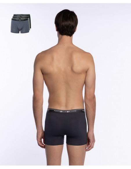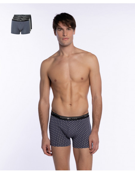 Disfruta del equilibrio perfecto entre comodidad, ajuste y estilo con este pack de 3 bóxers de Punto Blanco, diseñados para acompañarte en tu día a día con total libertad de movimiento.