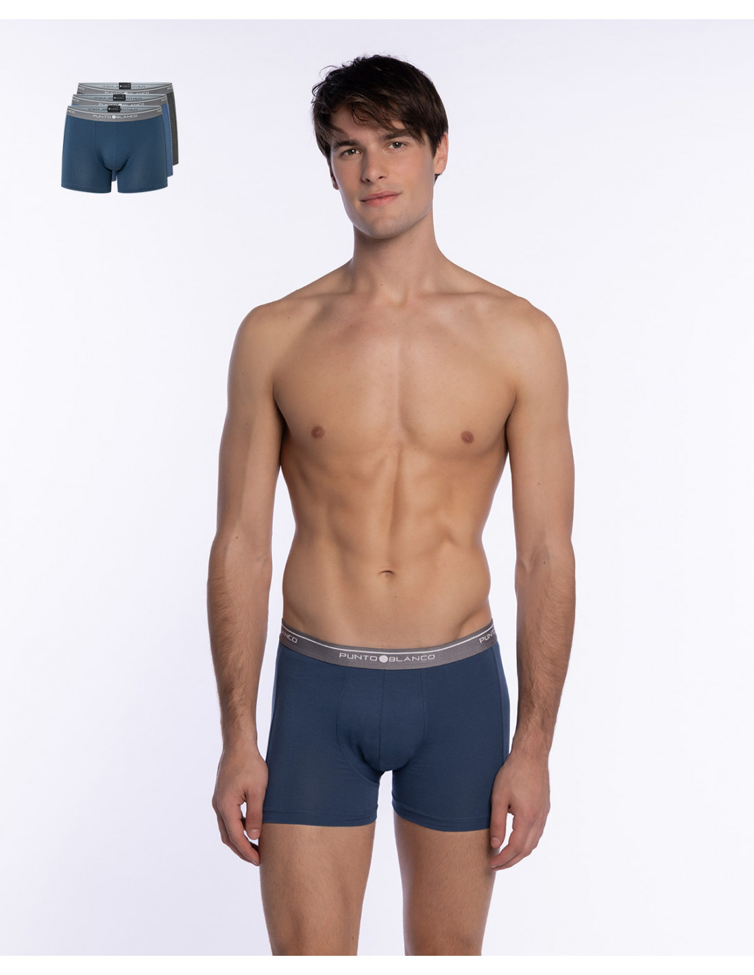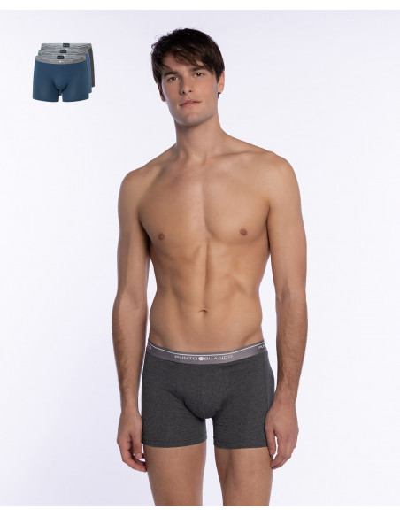 Disfruta del equilibrio perfecto entre comodidad, ajuste y estilo con este pack de 3 bóxers de Punto Blanco, diseñados para acompañarte en tu día a día con total libertad de movimiento.