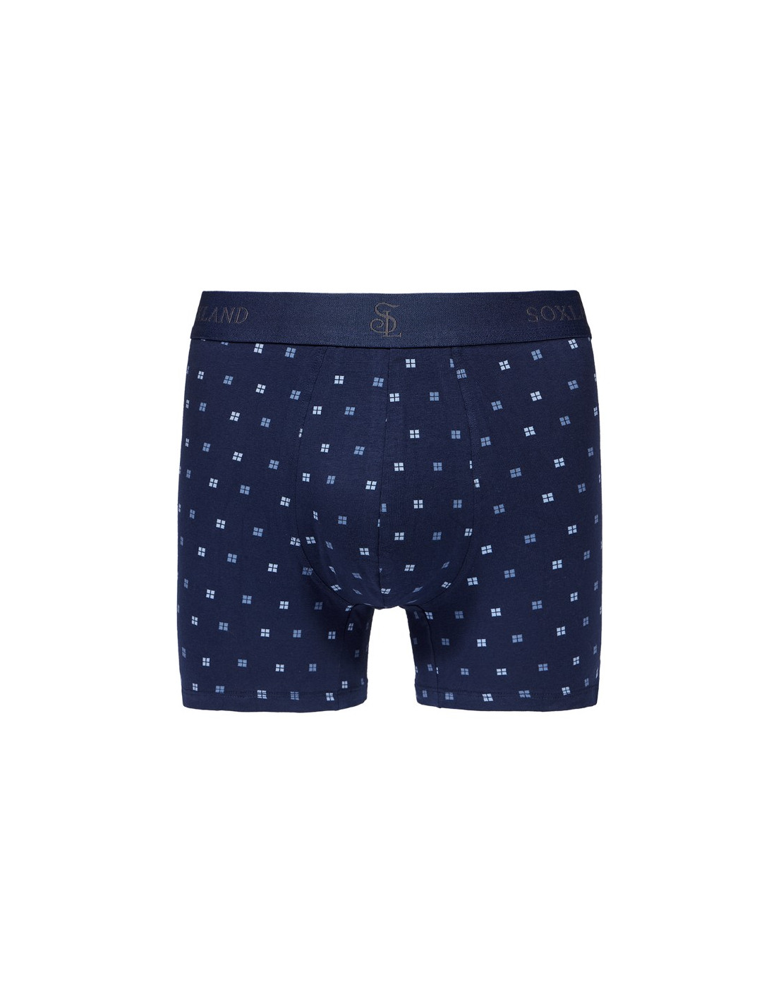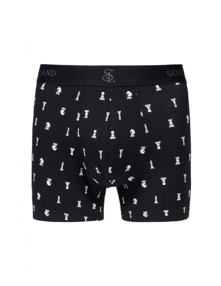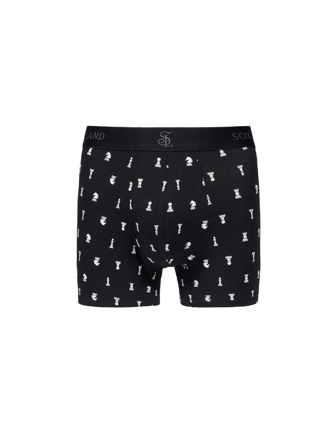 Cada bóxer presenta un diseño estampado de piezas de ajedrez y cuadrados en fondo negro y azul marino, aportando un toque moderno y dinámico. Su cintura elástica proporciona un ajuste seguro sin presionar, adaptándose al cuerpo con total comodidad.