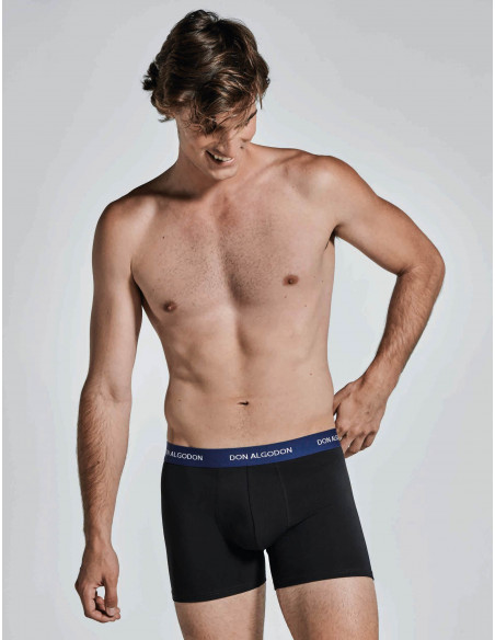 Cada bóxer presenta un diseño en color negro, acompañado de una cintura elástica vista con detalles en diferentes colores, que aporta un toque moderno y deportivo.
