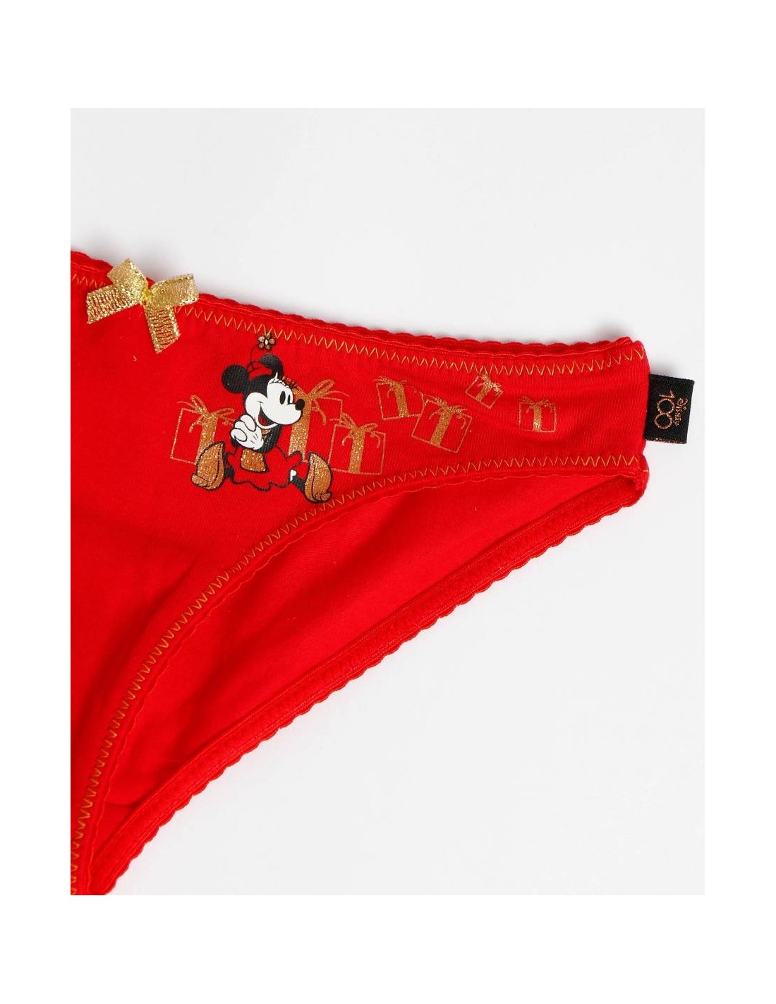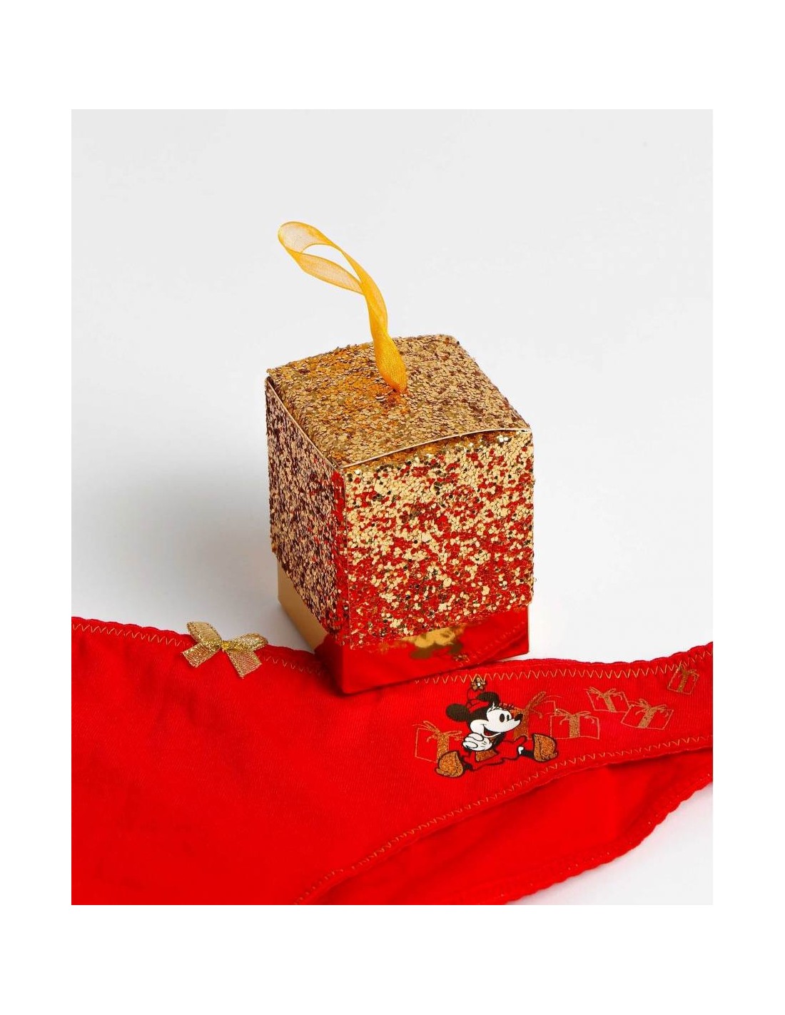 Su diseño en color rojo se complementa con un adorable estampado de Minnie en un lateral, aportando un detalle dulce y lleno de encanto. Además, viene presentada en una elegante caja dorada, perfecta para regalar o como detalle especial durante las fiestas.