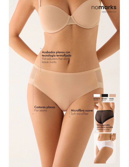 - Tul transpirable con efecto invisible para una ropa interior discreta bajo la ropa.