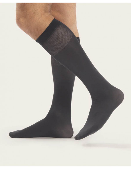 Confeccionados en tejido de poliamida de 70 deniers, estos calcetines ofrecen un tacto suave y una apariencia fina y elegante, ideales para el uso diario o entornos profesionales. Su puño antipresión garantiza un ajuste cómodo que no aprieta ni deja marcas, proporcionando una sensación continua de comodidad.