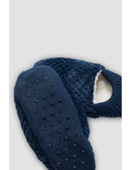 Patucos de estilo calcetín con suela antideslizante que combinan lo mejor de una zapatilla y un calcetín en una sola prenda. Su interior suave y su diseño envolvente los convierten en la opción perfecta para estar en casa con total confort y estabilidad. Disponibles en azul marino, gris y beige.