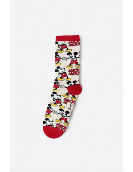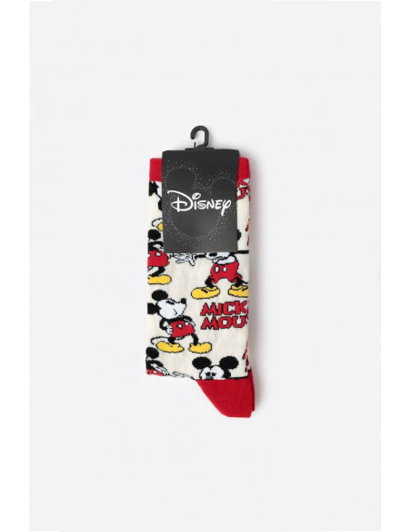 Disponibles en dos combinaciones de diseño y color: crudo y rojo, estos calcetines combinan el encanto clásico de Mickey con la comodidad de un tejido suave y elástico, ideal para el uso diario.