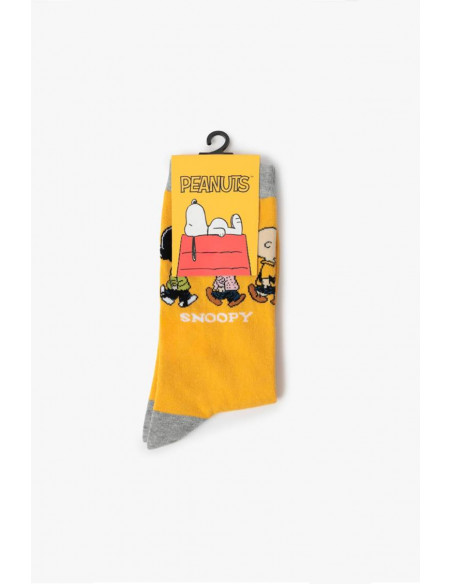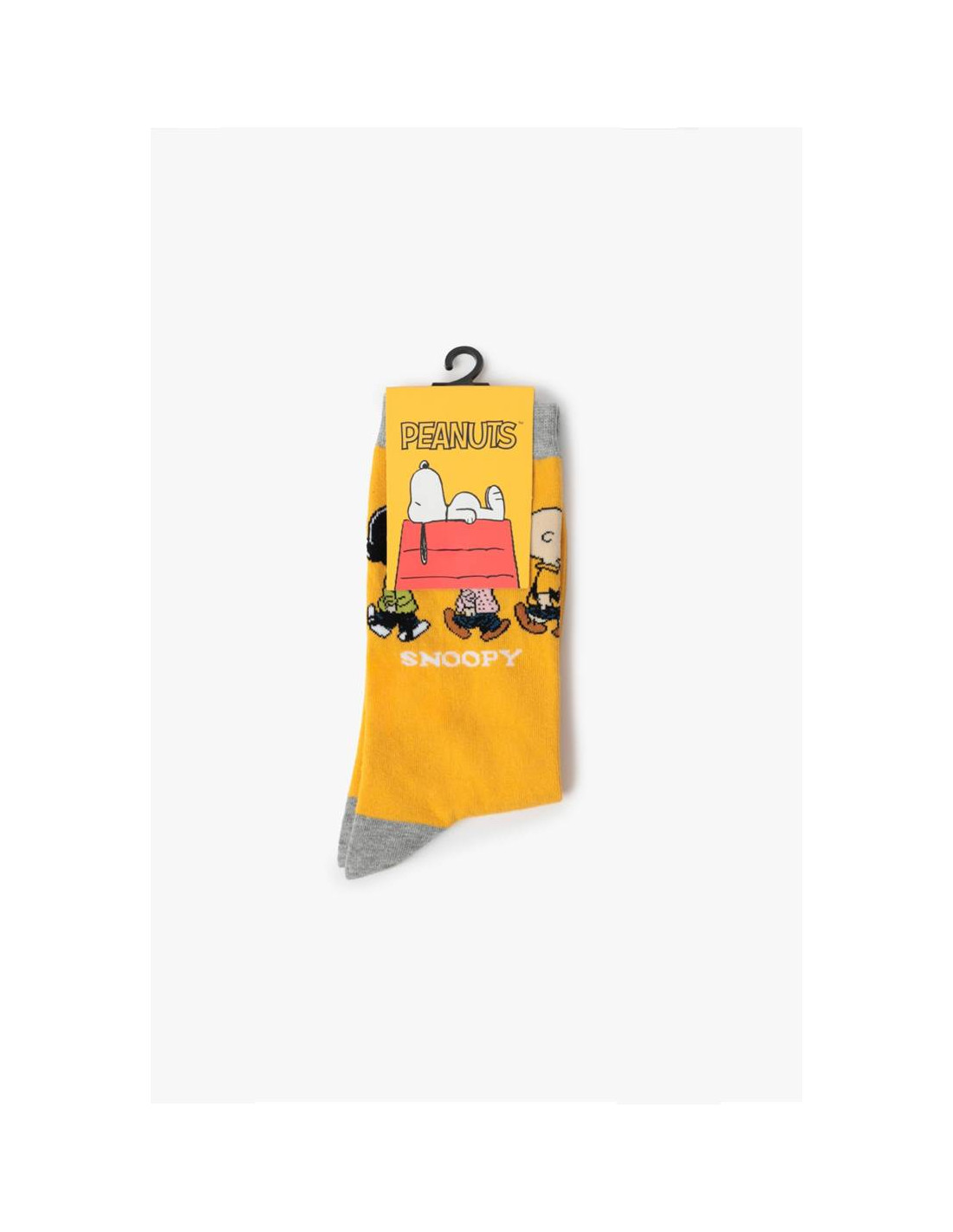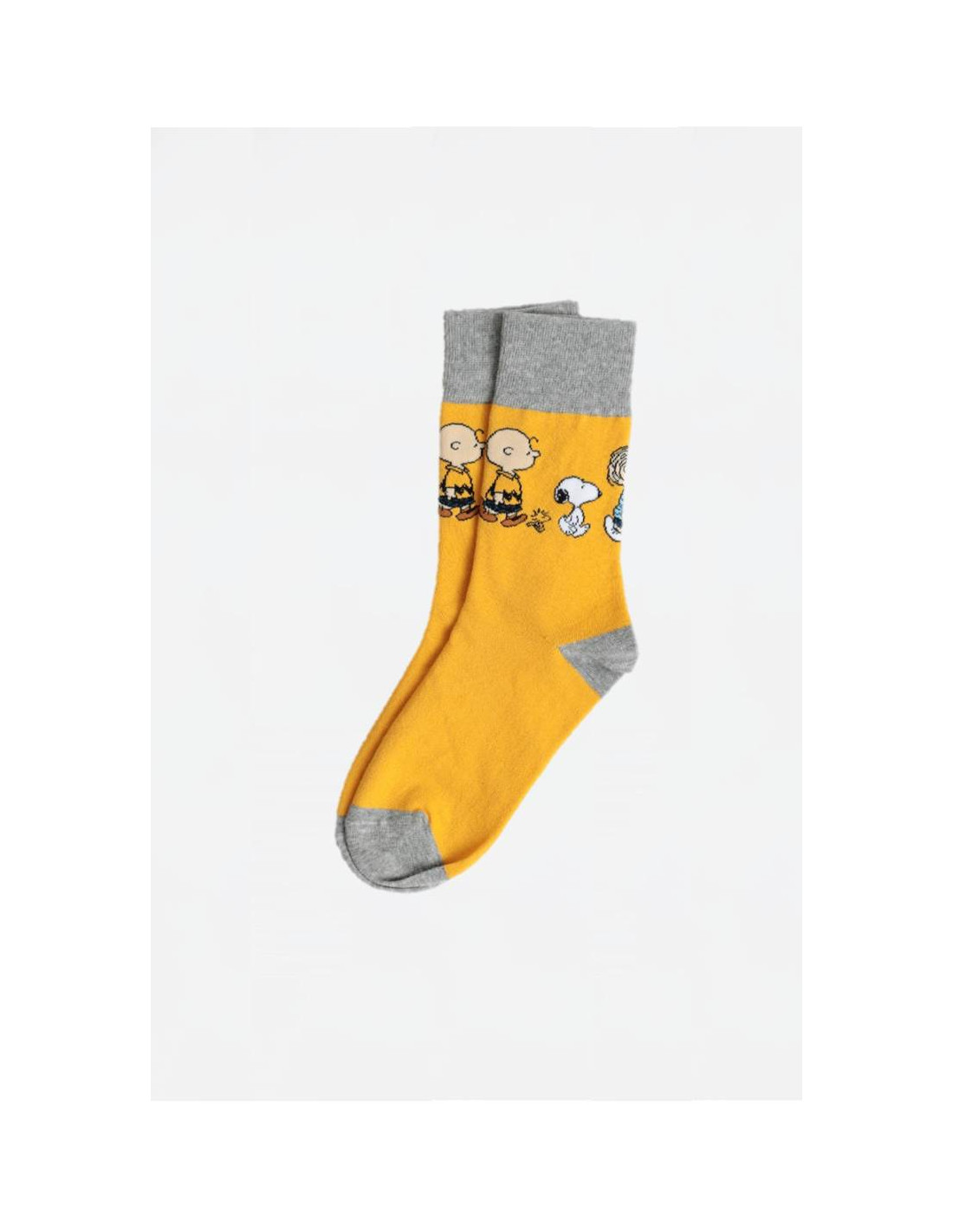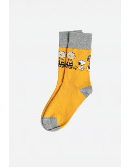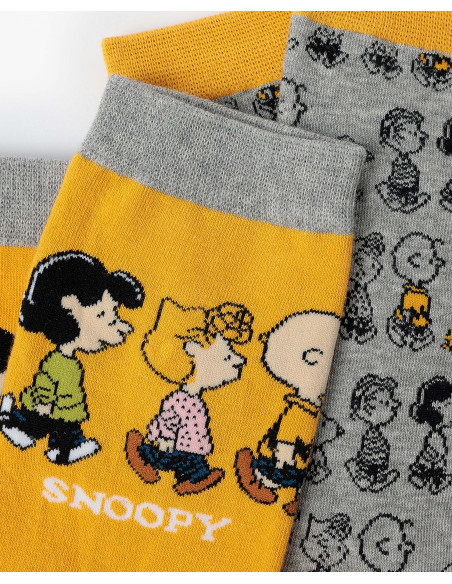 Disponibles en dos combinaciones de diseño y color: amarillo mostaza y gris marengo, estos calcetines combinan el encanto de Snoopy con la comodidad de un tejido suave y elástico, ideal para el uso diario.