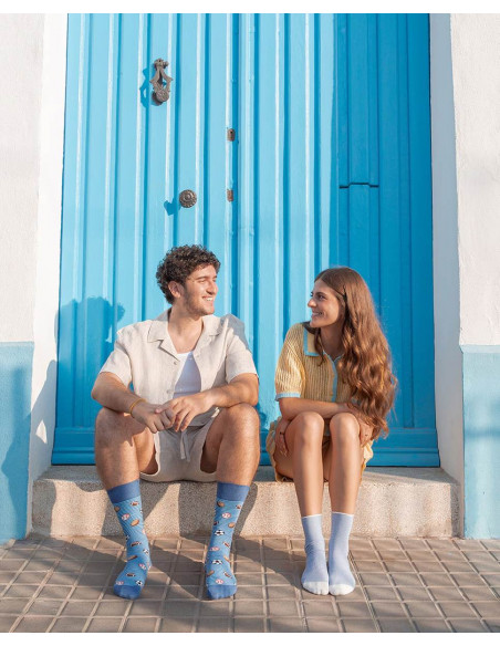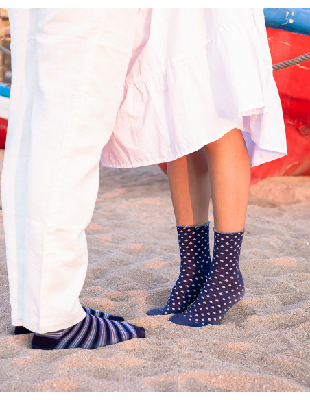 Estos calcetines están remallados a mano para proporcionar mayor confort y evitar rozaduras, e incorporan puño sensitive que se adapta suavemente al tobillo sin oprimir. Su diseño con estampados de flores y rayas en mezcla tonos azules, aportando un estilo fresco y encantador.