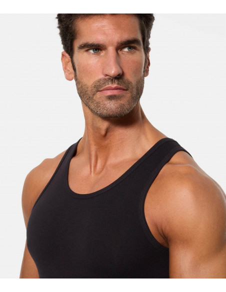 Tecnología e innovación al servicio de tu comodidad. La camiseta de tirantes Regul’activ de Abanderado está confeccionada en algodón elástico de alta calidad, e incorpora una tecnología termorreguladora inteligente que distribuye el sudor y acelera la evaporación de la humedad.