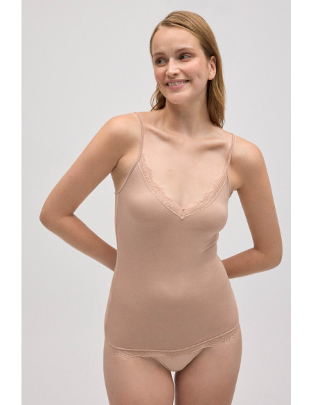 Camiseta Interior de Tirantes en Bambú con Encaje - Ysabel Mora
