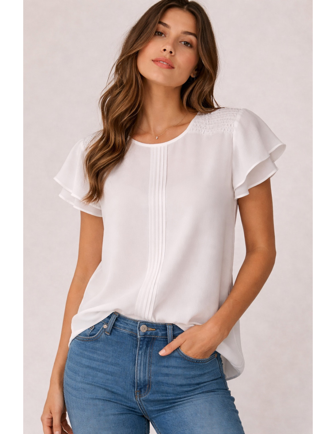 - Blusa de manga corta con volantes.