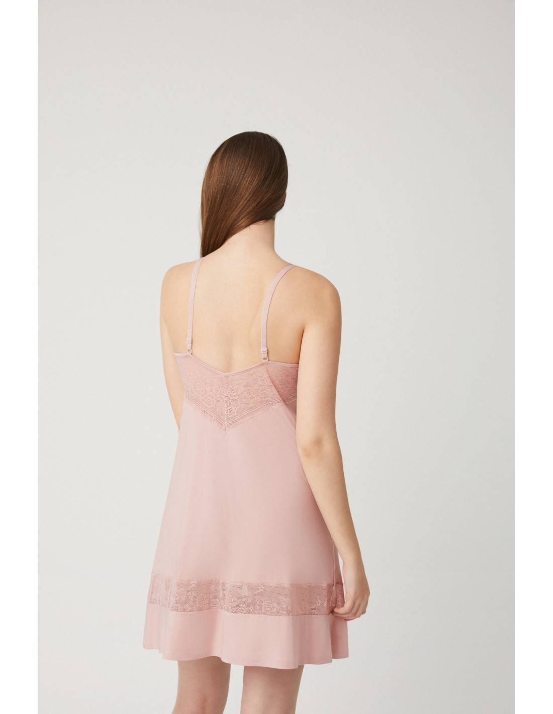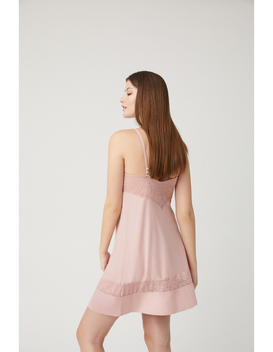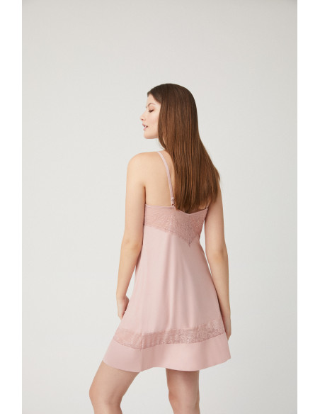 Ideal tanto para dormir como para momentos de relax o para sentirse especial en casa, este camisón combina a la perfección la delicadeza del encaje con la comodidad de un tejido suave y elástico, convirtiéndose en una pieza esencial en tu colección de lencería.