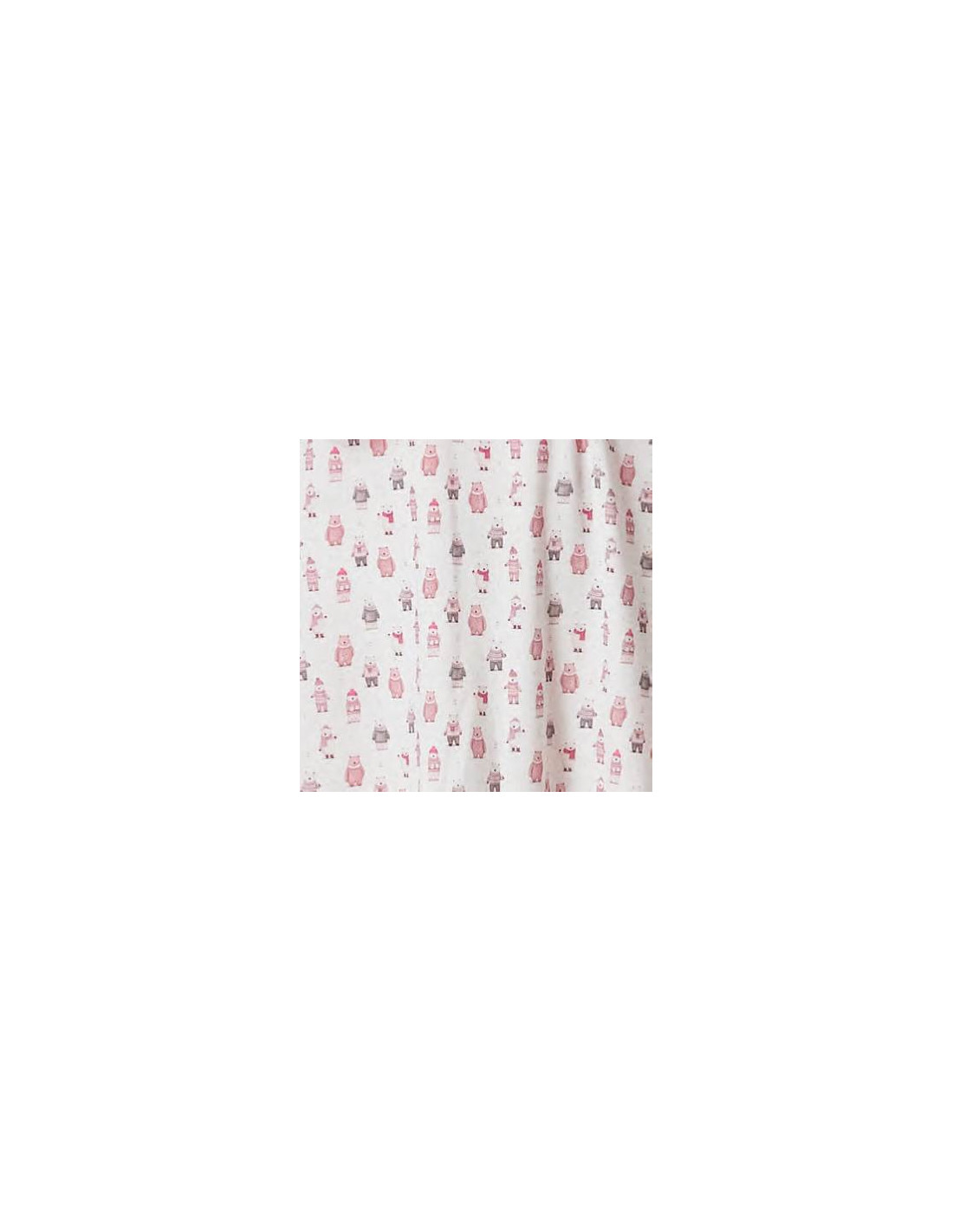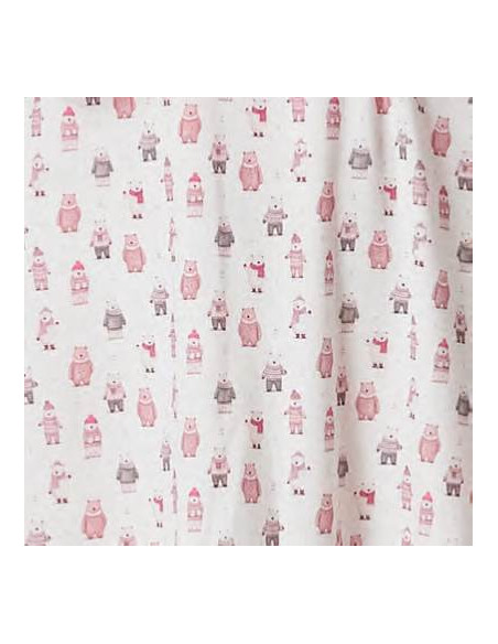 Confeccionado en 100% algodón suave y transpirable, este camisón de manga larga presenta un cuello redondo con tapeta y botones, lo que lo hace práctico y fácil de poner. Su diseño estampado de osos polares sobre fondo blanco con detalles en granate aporta un toque tierno y encantador.