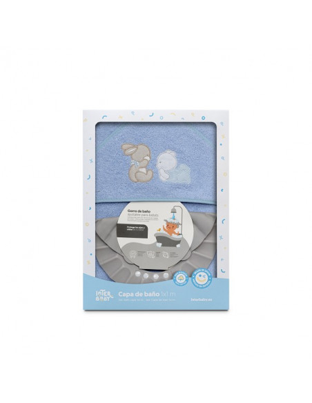Haz que la hora del baño sea aún más especial con este adorable set de la marca Interbaby, compuesto por una capa de baño 100% algodón y un gorro protector ajustable.