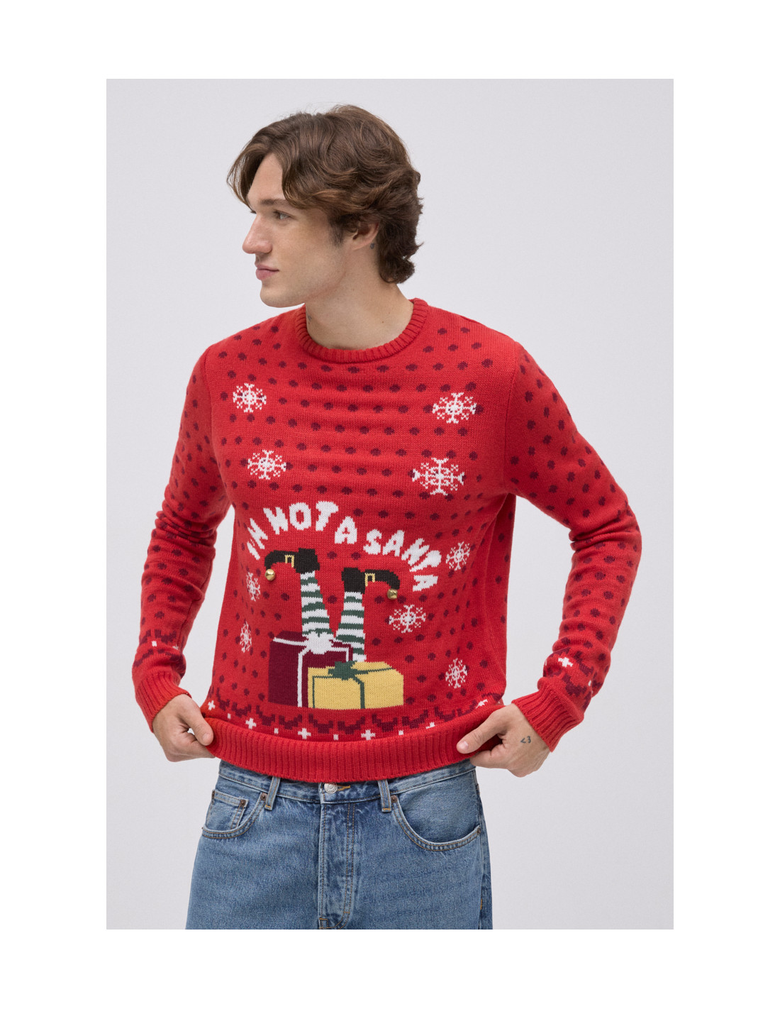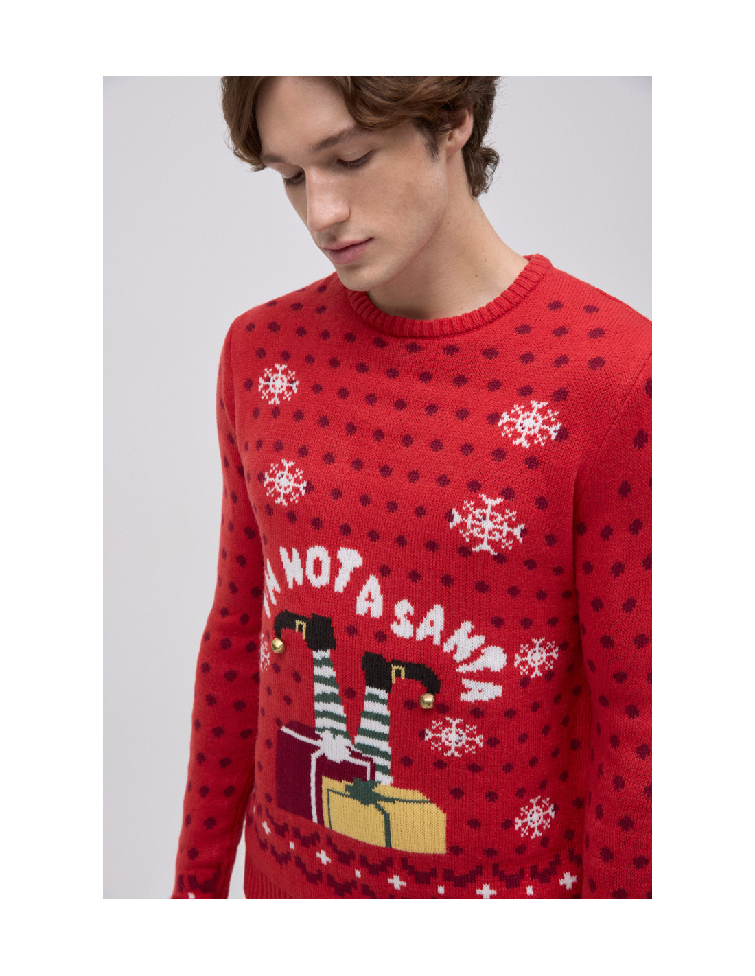 Confeccionado en tejido cálido y suave, este jersey te ofrece confort y abrigo durante el invierno, ideal para disfrutar de reuniones familiares, cenas o fiestas temáticas. Además, los cascabeles cosidos en relieve añaden un detalle dinámico y alegre: suenan con cada movimiento, llenando de espíritu navideño cada momento.