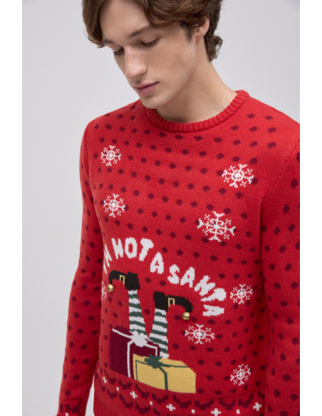 Celebra la magia de las fiestas con estilo y diversión con el Jersey Navidad con Cascabeles de Ysabel Mora, una prenda pensada para llenar de alegría y espíritu navideño los días más especiales del año. Su diseño en color rojo festivo destaca por un estampado de elfo rodeado de regalos y copos de nieve, acompañado del divertido mensaje “I’m not a Santa”, que aporta un toque de humor y originalidad a tu look.