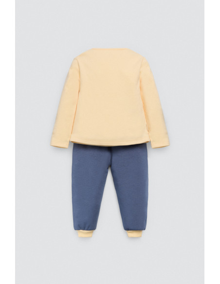 El conjunto está compuesto por tres piezas pensadas para el confort diario del bebé: camiseta de manga larga, confeccionada en tejido suave y agradable al tacto. Bandana a juego, práctica y con un diseño adorable. Pantalones con cintura ajustable, que se adaptan al cuerpo del bebé sin apretar, permitiendo total libertad de movimiento.