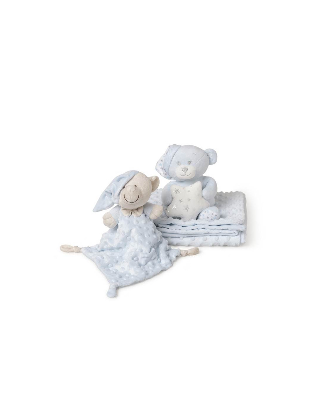 • Set de 3 piezas: manta de topos, dou dou osito y peluche.