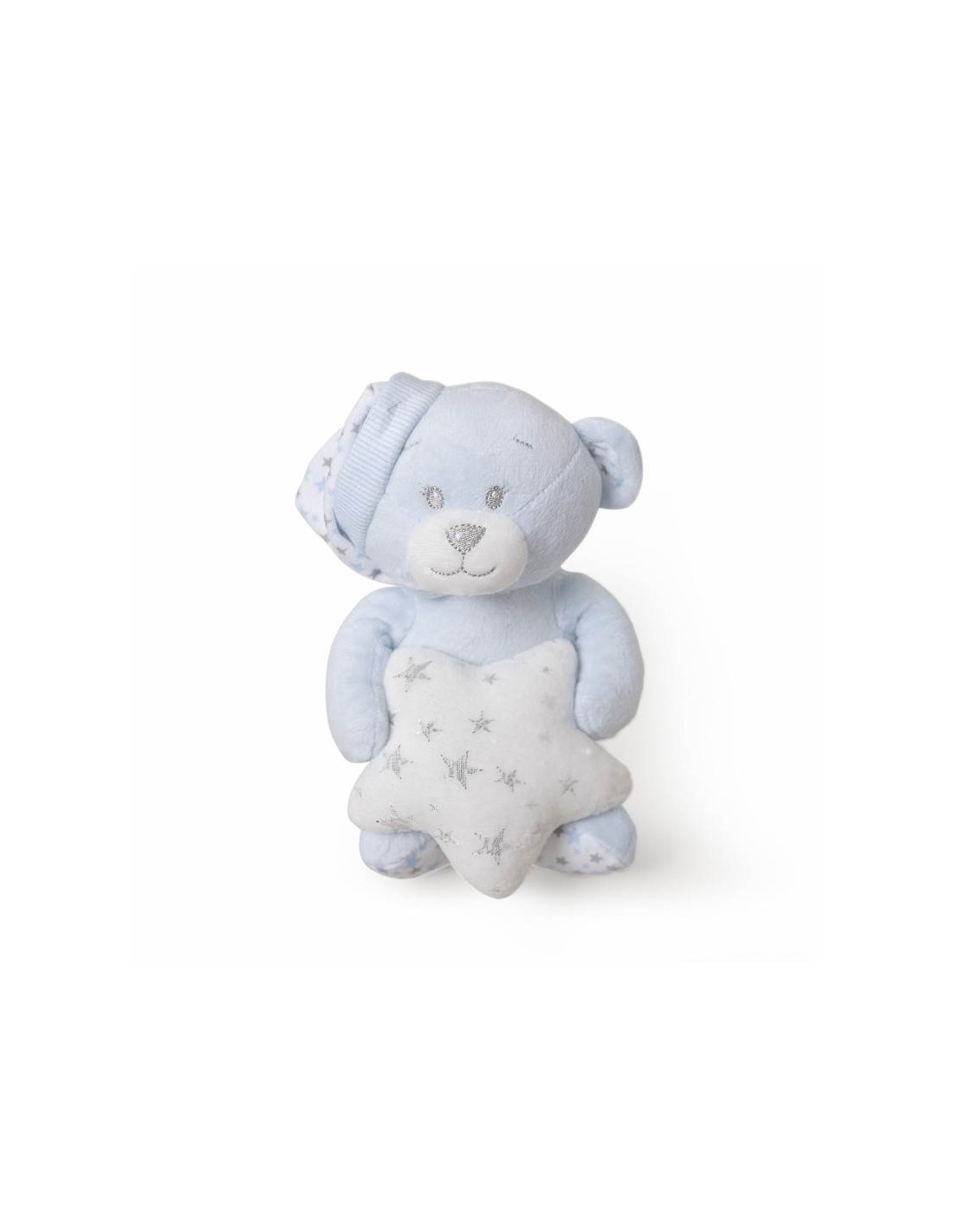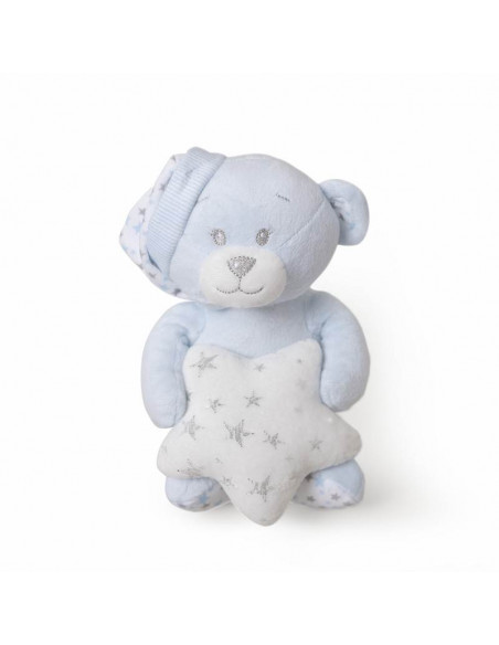 El pack está formado por una manta con relieve de topos, un dou dou con forma de osito y un peluche de oso, todo presentado en una encantadora caja con forma de casita, perfecta para regalar desde el primer día. Todos los elementos están confeccionados en tejido aterciopelado, muy suave y agradable al tacto.