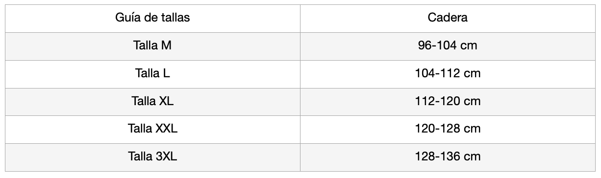 Guía de tallas: