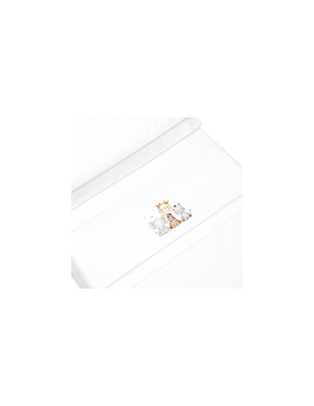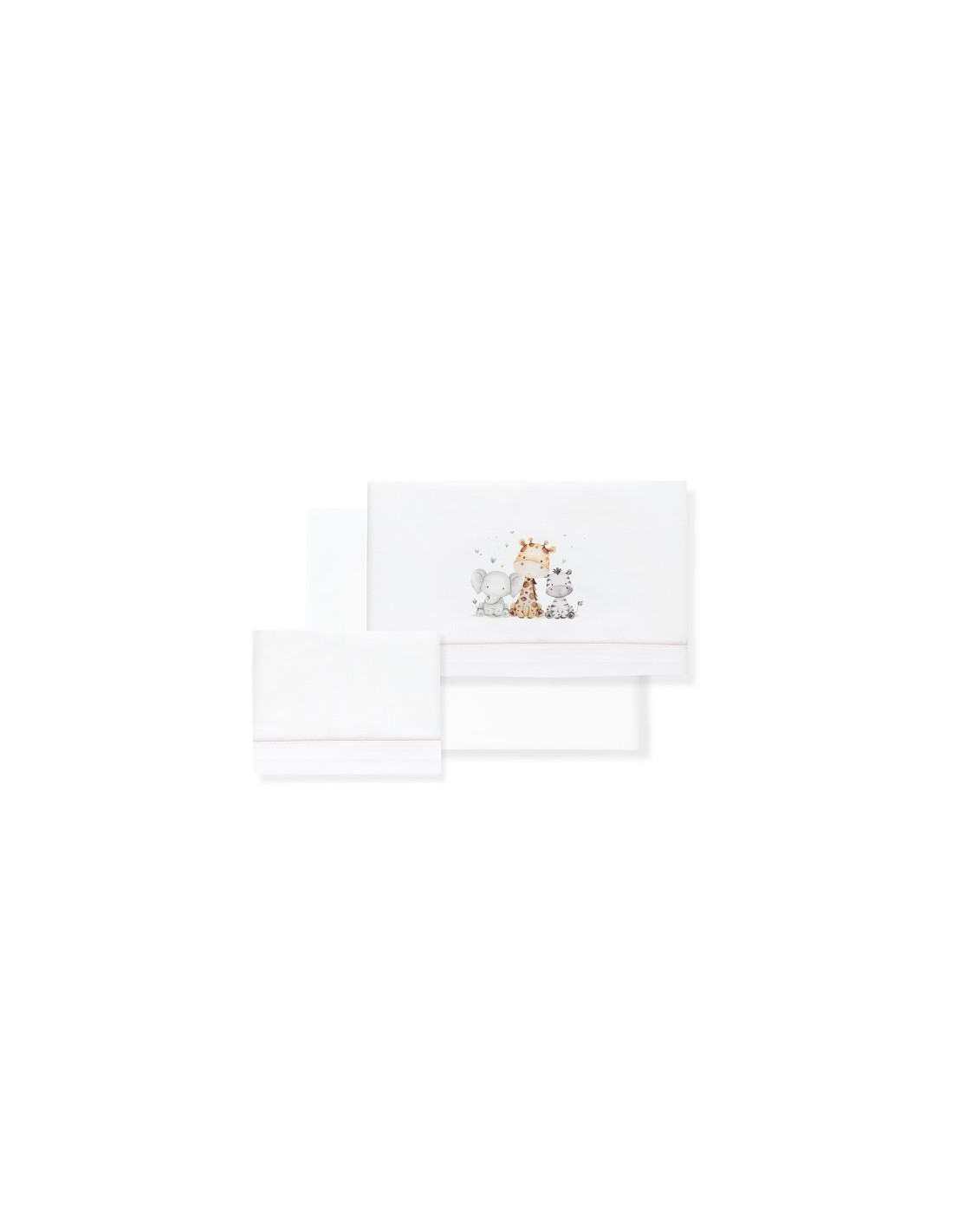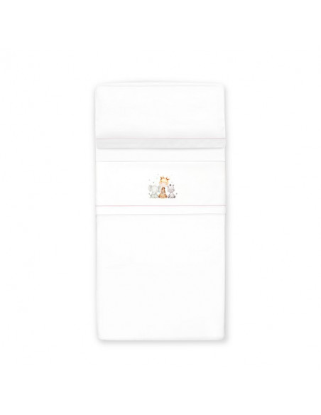 Confeccionado en tejido 100% algodón, este set cuida la piel sensible del recién nacido gracias a su tacto suave, transpirable y seguro. Su diseño estampado de un grupo de animalitos, aporta un estilo dulce y acogedor, perfecto para el cochecito o moisés.