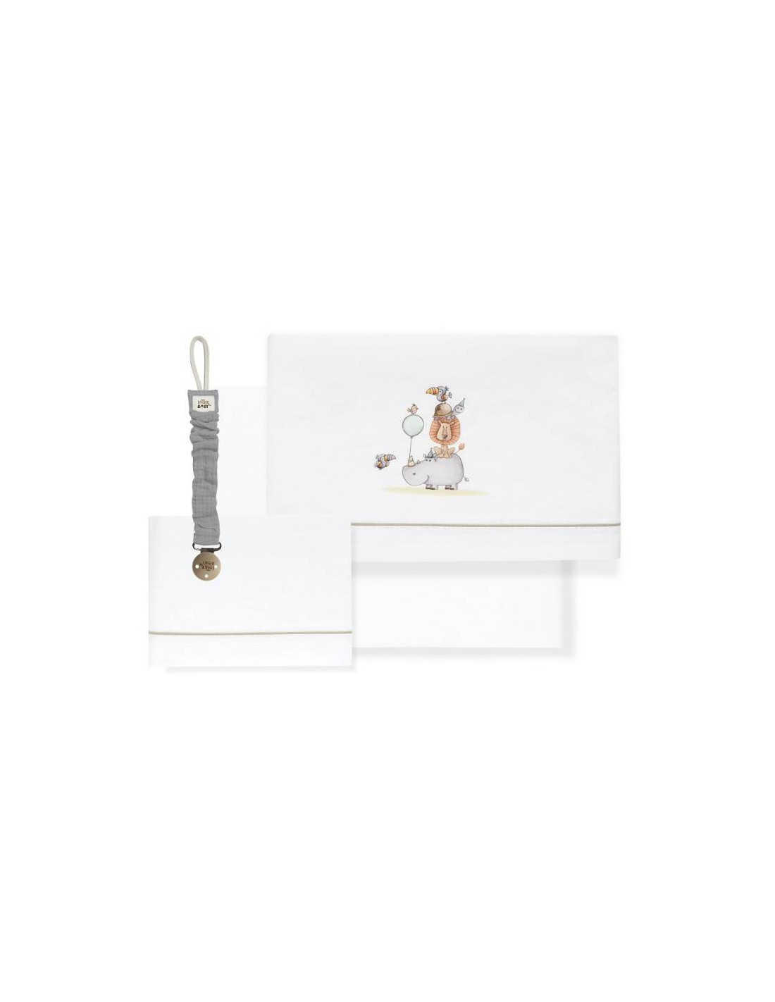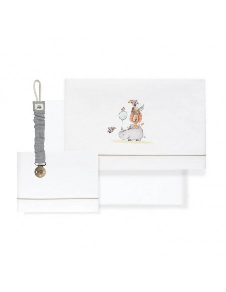 Juego de Sábanas para Cochecito o Moisés + Chupetero Muselina Rino León – Interbaby