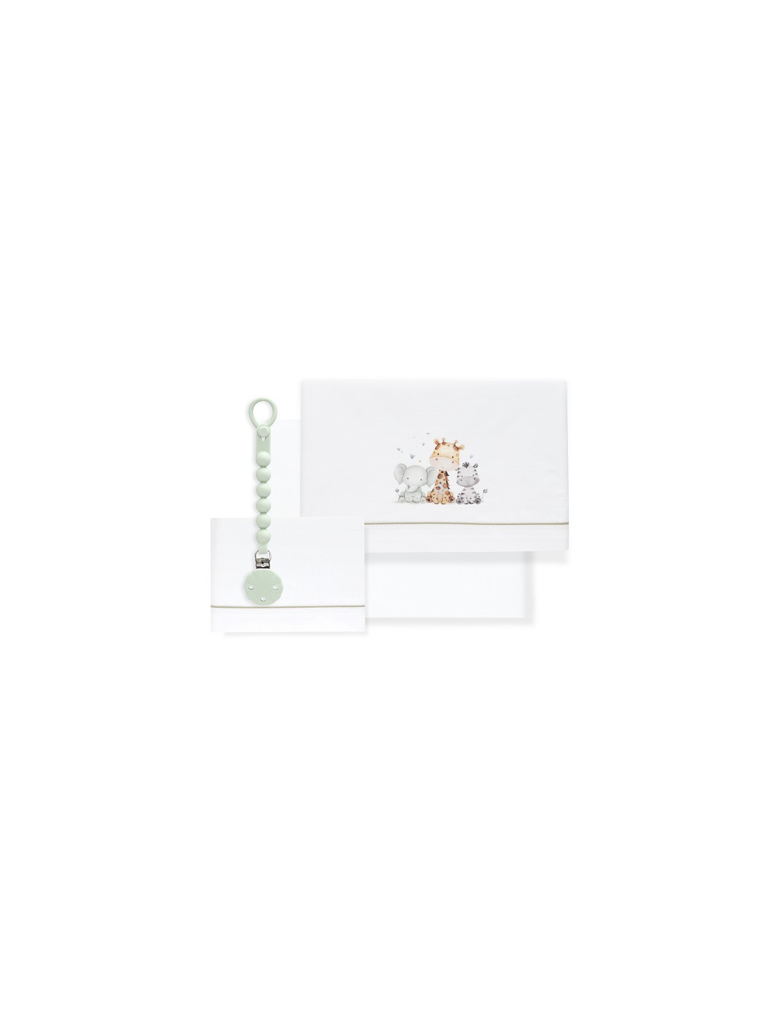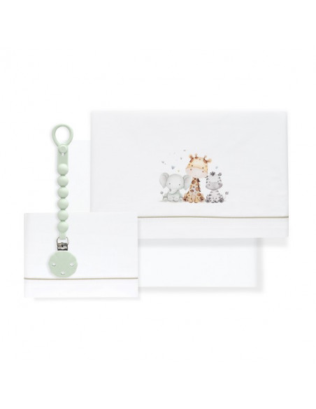 Juego de Sábanas para Cuna + Chupetero Silicona Jirafa Elefante – Interbaby