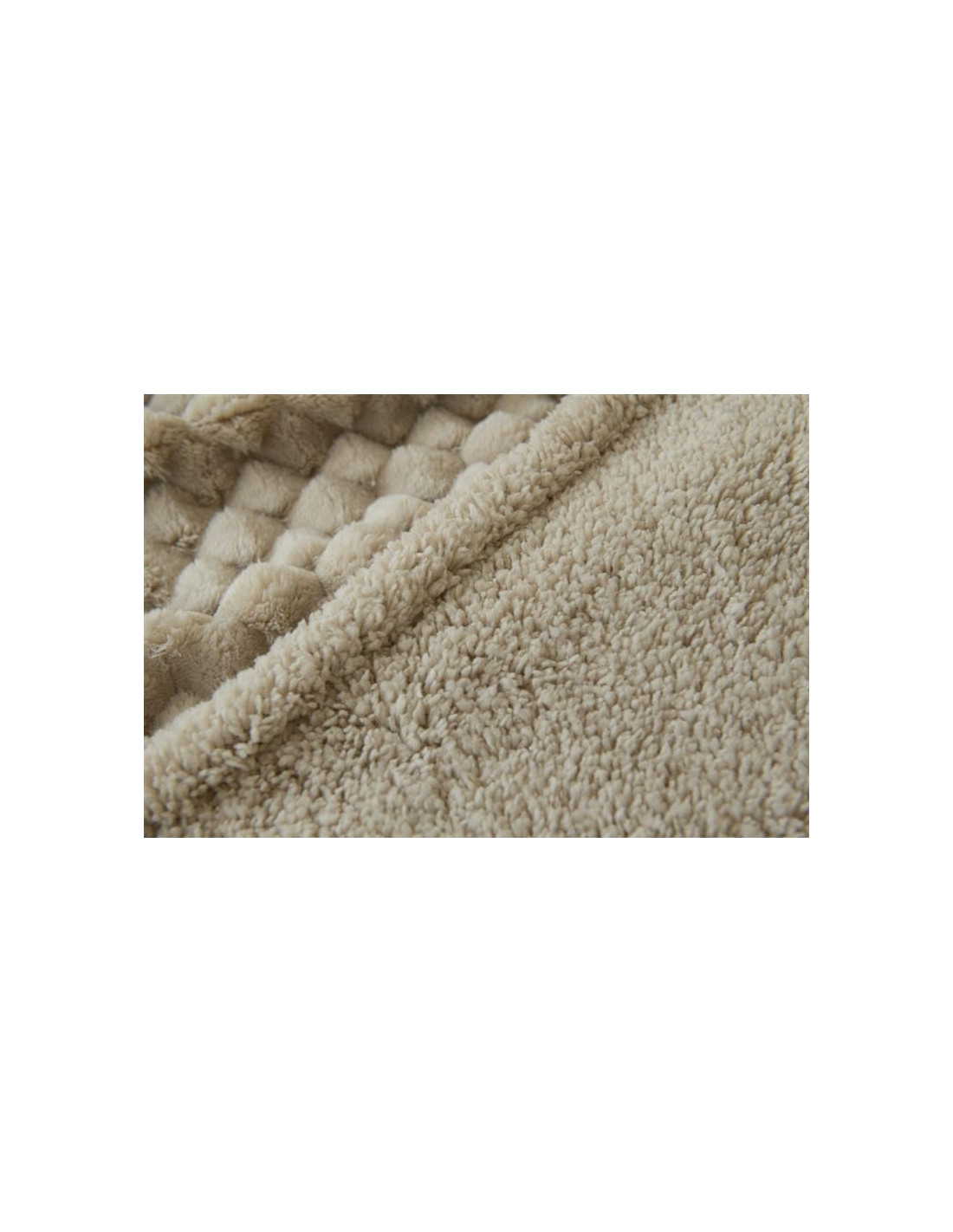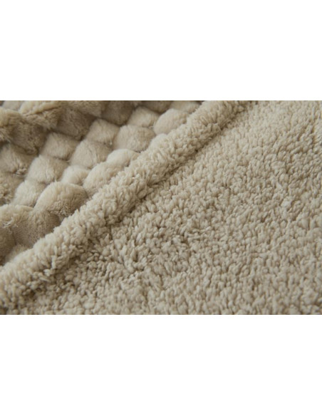 Confeccionada en tejido jacquard flannel de alta densidad (360 GSM), su textura gruesa y agradable al tacto ofrece una sensación de abrigo incomparable. El reverso en sherpa tipo borreguillo (180 GSM) proporciona un extra de suavidad y confort térmico, ideal para esas tardes de sofá, manta y película.