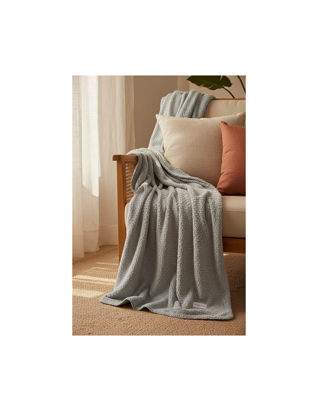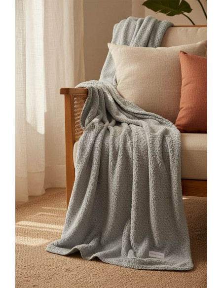 Con su material dual, esta manta combina un lado de pelo suave y texturizado con otro de borreguito cálido, creando una experiencia envolvente y muy agradable al tacto.