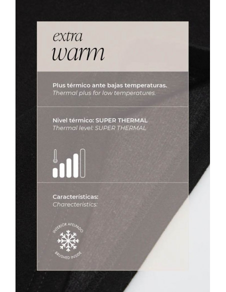 Gracias a su confección en tejido elástico y de alta densidad, proporciona una capa de abrigo invisible, envolviendo tus piernas con suavidad y confort sin renunciar a la ligereza ni al estilo. Ideal para quienes buscan una prenda térmica con un acabado elegante, este panty se convierte en un aliado imprescindible para lucir tus outfits favoritos durante el invierno.