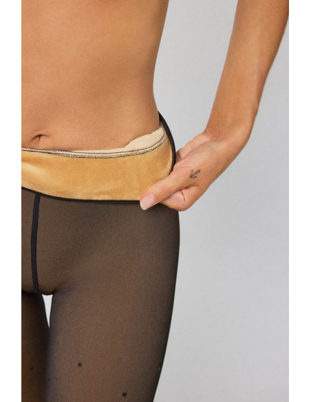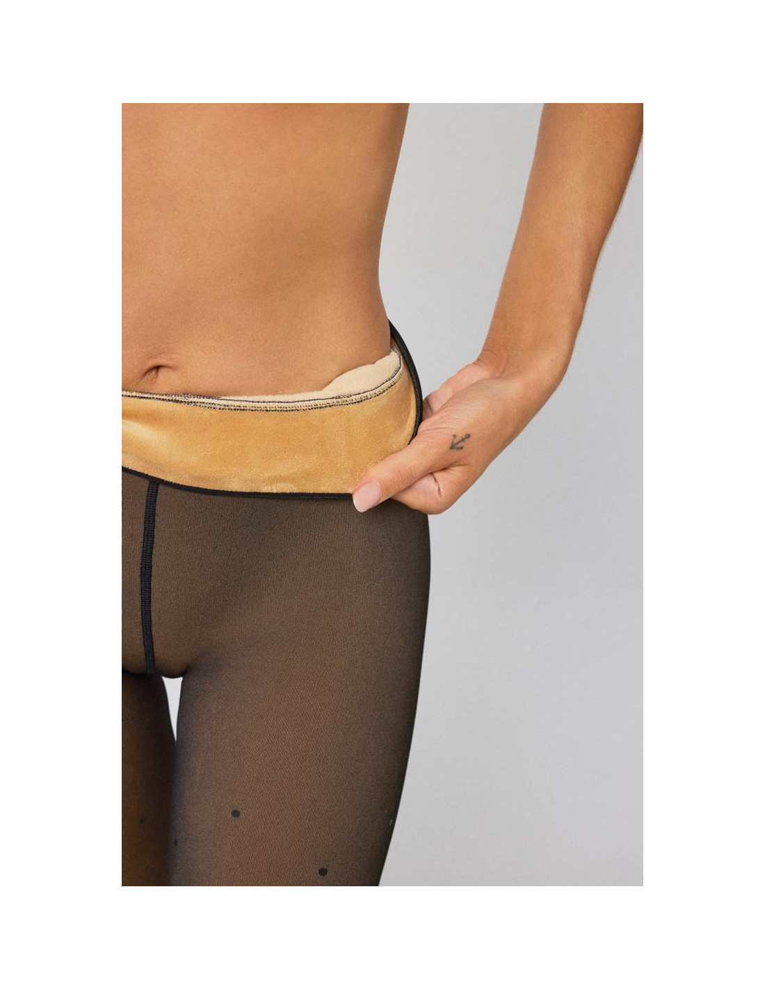 - Doble estructura interior y exterior: interior de forro polar en tono nude, cálido y suave / Exterior de panty negro semitransparente, efecto visual natural.