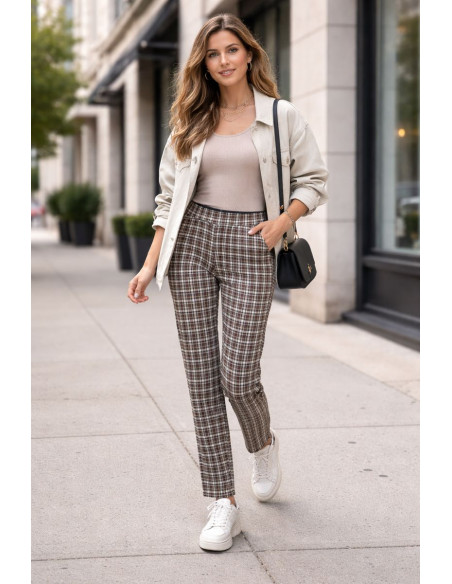 Su diseño destaca por un estampado de cuadros tricolor y una cintura con forma, que no solo aporta un toque moderno, sino que también ofrece un ajuste favorecedor. Ideal para looks casuales o más arreglados, según cómo lo combines.