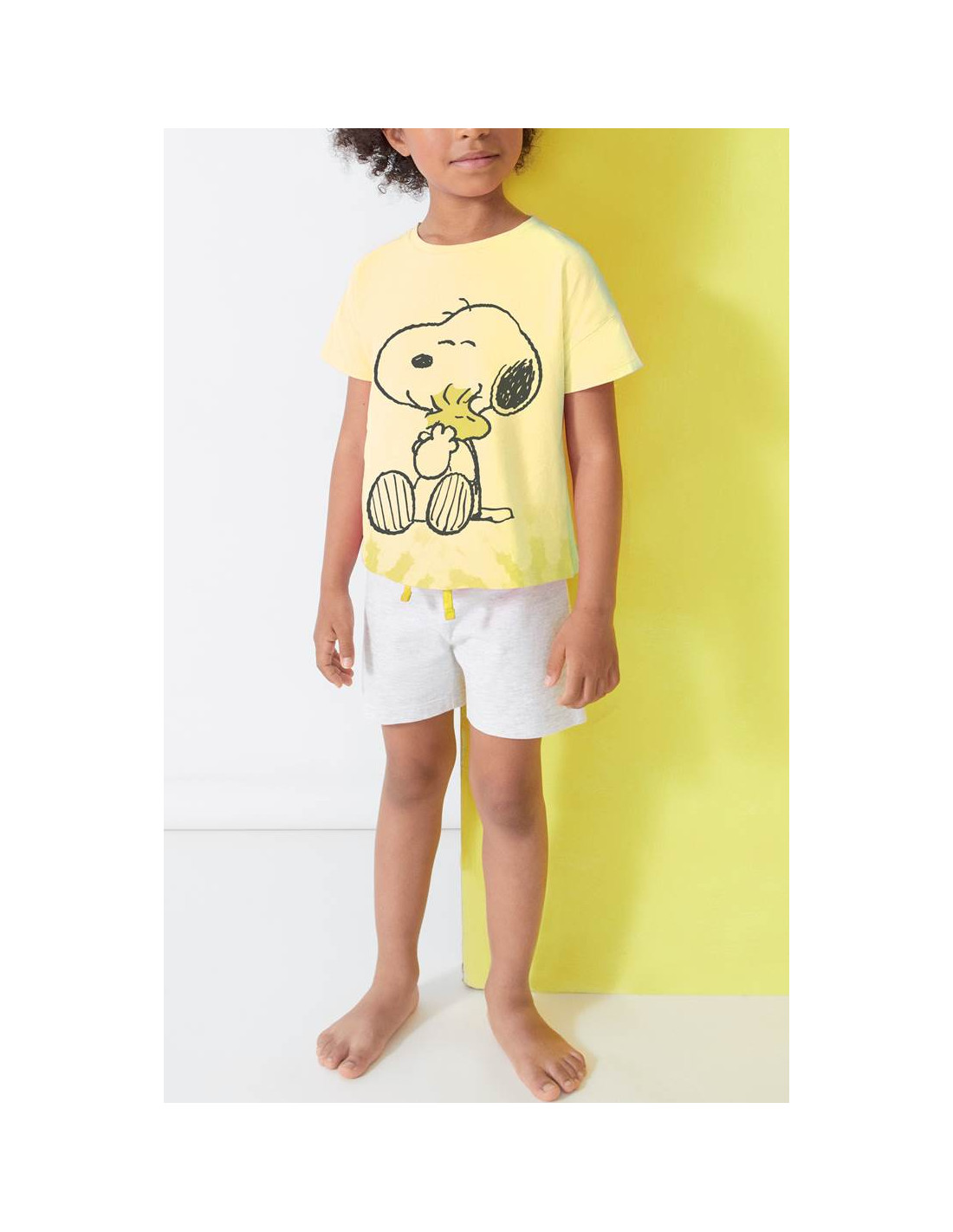 Este pijama corto de Tobogán, confeccionado en 100% algodón suave y transpirable, es ideal para las noches más cálidas. La camiseta de manga corta presenta un alegre estampado de Snoopy sobre un fondo amarillo pastel, con cuello redondo para mayor comodidad.