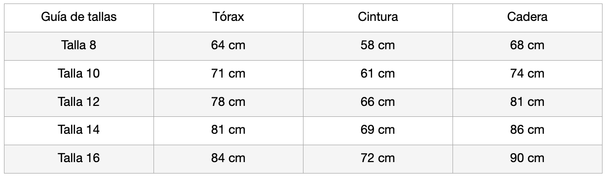 Guía de tallas:
