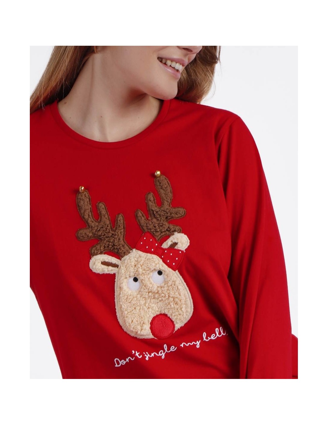 Su diseño alegre, protagonizado por un simpático reno con cascabeles, convierte este pijama en la prenda ideal para disfrutar del espíritu navideño en casa o sorprender con un regalo lleno de encanto.