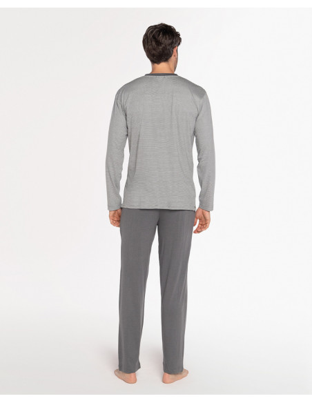 Pijama Largo Bambú Rayas Grises Punto Blanco 34329/70
