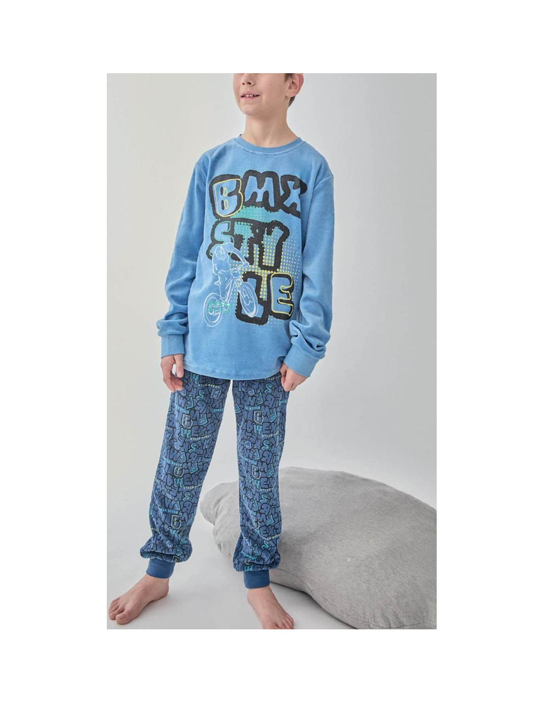 Duerme cómodo y con estilo con el Pijama Largo Tundosado BMX Style de Tobogán. Su tejido tundosado, suave y cálido al tacto, lo convierte en la opción perfecta para las noches más frescas.