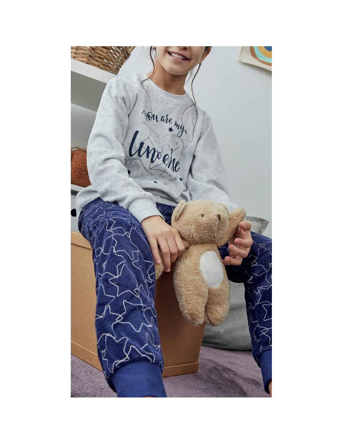 Duerme cómodo y con estilo con el Pijama Largo Tundosado Universo de Tobogán. Su tejido tundosado, suave y cálido al tacto, lo convierte en la opción perfecta para las noches más frescas.