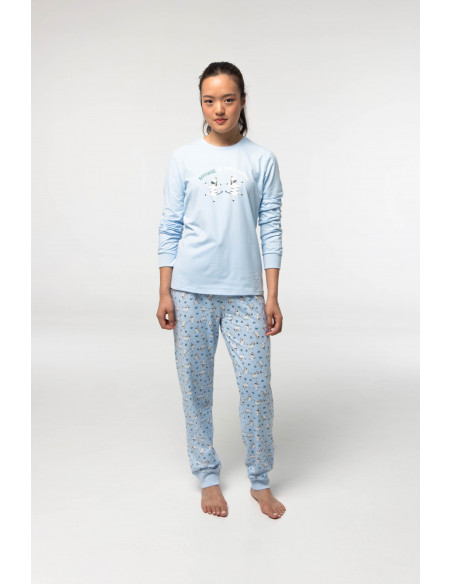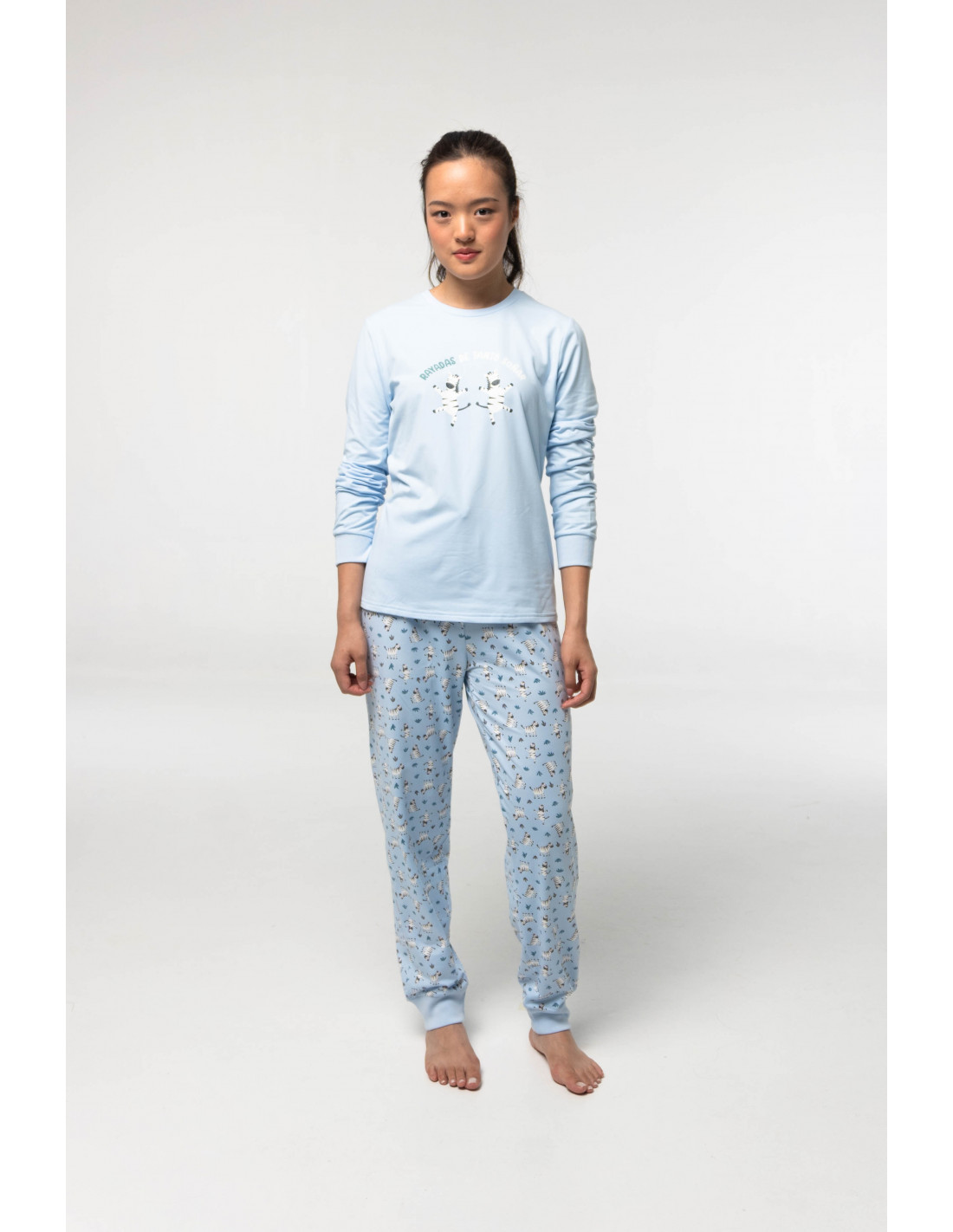 La camiseta, de manga larga y cuello redondo, está confeccionada en suave tejido de viscosa con interior afelpado, lo que aporta una sensación acogedora ideal para los días más fríos. Su estampado con dos cebras con mensaje "rayadas de tanto soñar" sobre fondo liso añade un toque tierno y divertido sin renunciar a la sencillez y comodidad que buscas en un buen pijama.
