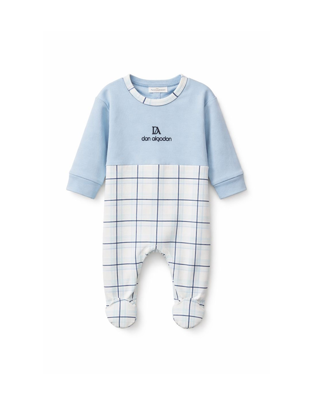 Este pijama de manga larga y cuello redondo destaca por su elegante diseño estampado de cuadros, con delicados detalles a color sobre un fondo en tonos azul celeste y blanco, que aportan un estilo clásico y atemporal. Incorpora apertura trasera con cierre mediante corchetes, facilitando el cambio y asegurando un ajuste cómodo.