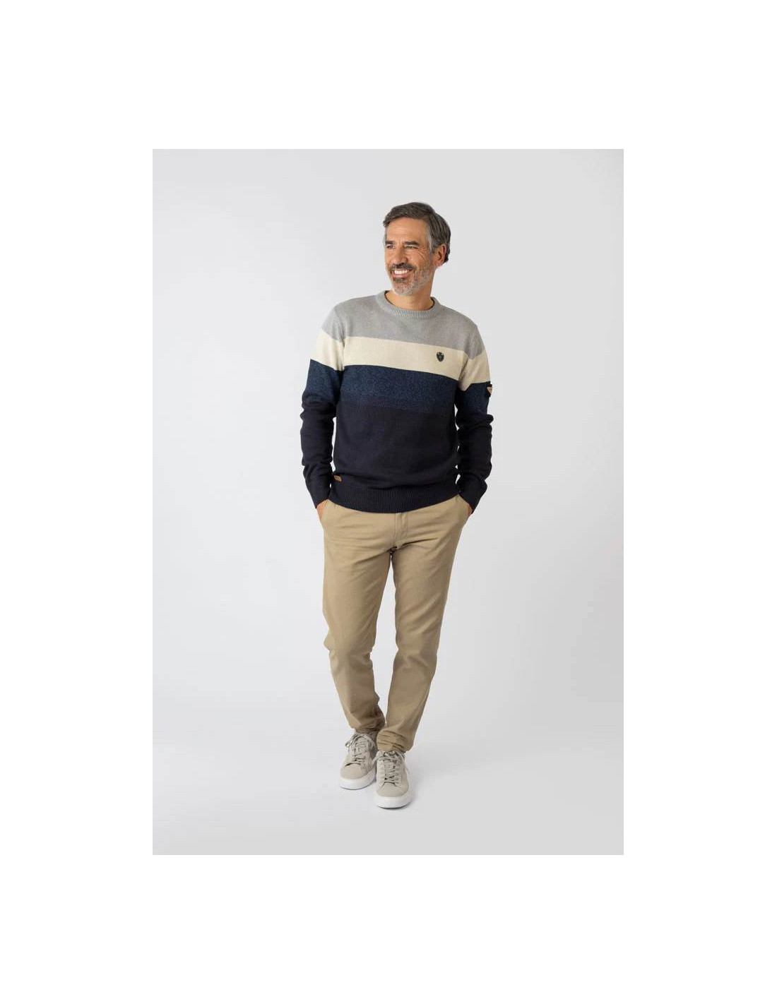 Modernidad y estilo se fusionan en el Jersey de Punto Degradé de Privata, una prenda diseñada para quienes buscan un look actual sin renunciar a la comodidad. Su diseño con bloques de color en tonos combinados crea un efecto degradé atractivo y muy versátil, perfecto para destacar en cualquier ocasión.