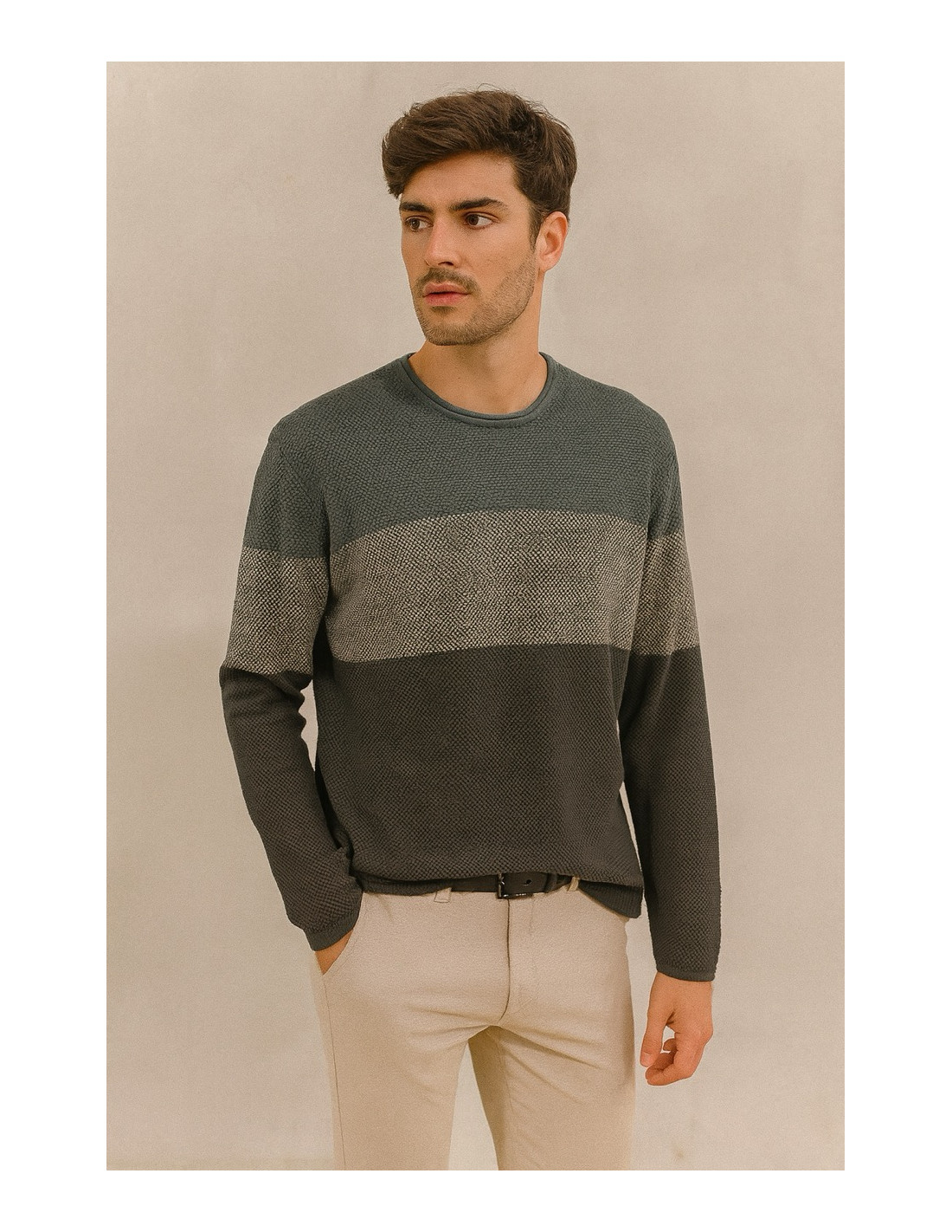Modernidad y estilo se fusionan en el Jersey de Punto Tricolor de Losan, una prenda diseñada para quienes buscan un look actual sin renunciar a la comodidad. Su diseño con bloques de color (verde, gris claro y gris marengo) en tonos combinados crea un efecto degradé atractivo y muy versátil, perfecto para destacar en cualquier ocasión.