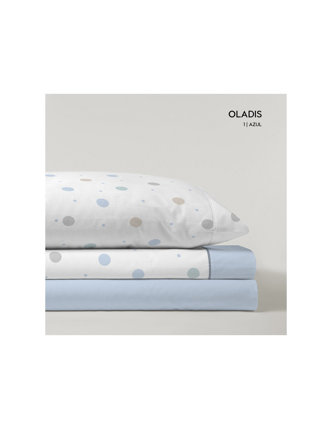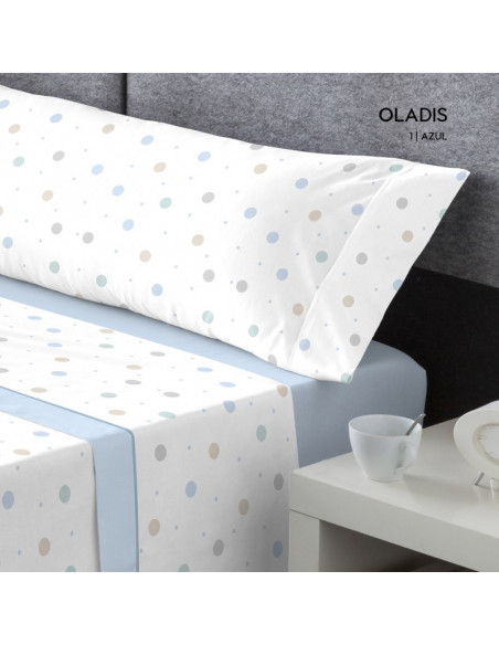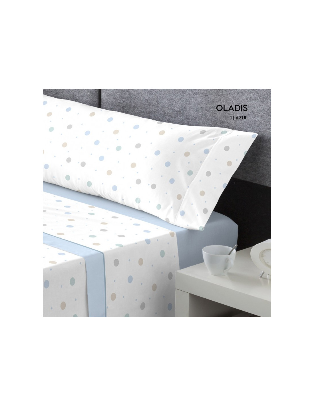 Envuélvete en suavidad y calidez con el juego de sábanas Coralina Brezo Oladis de Catotex, perfecto para los meses más fríos. Su diseño original combina topos en diferentes tamaños y colores con detalles en color azul sobre fondo blanco, aportando un toque fresco y acogedor al dormitorio.