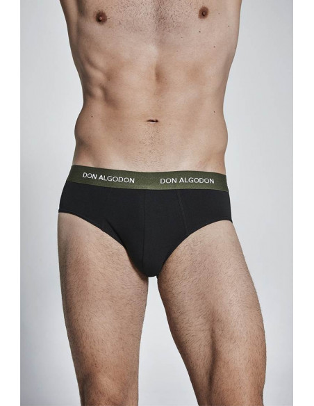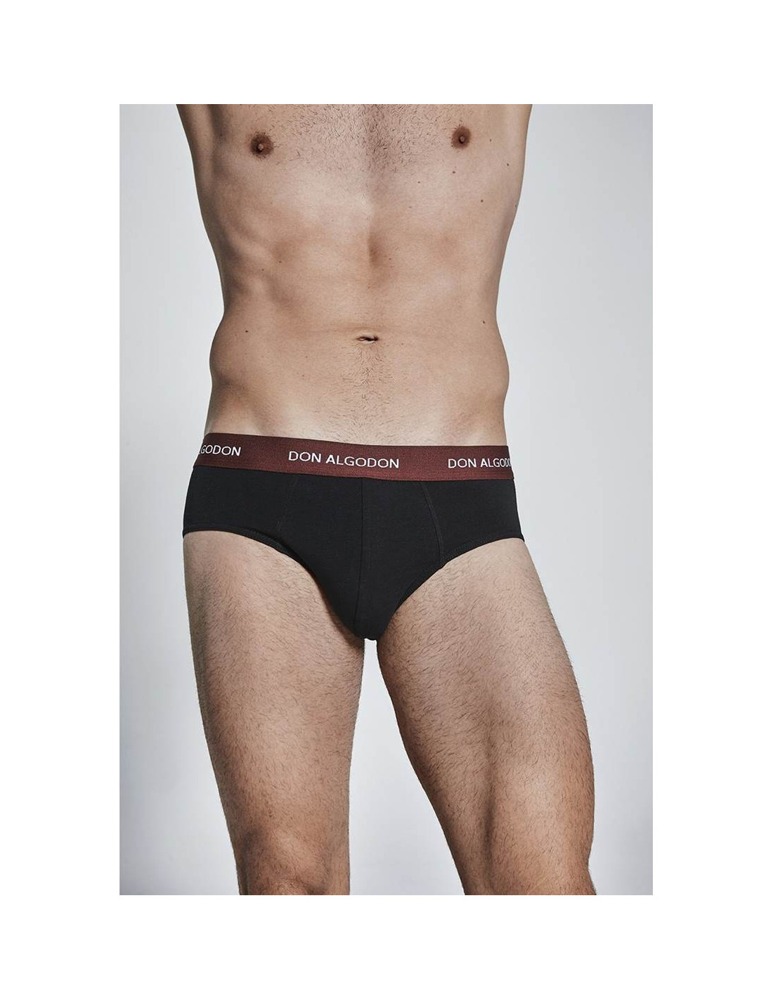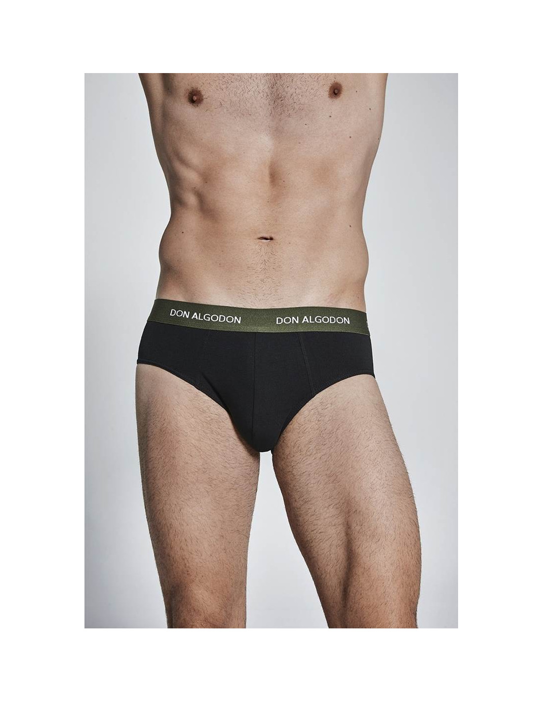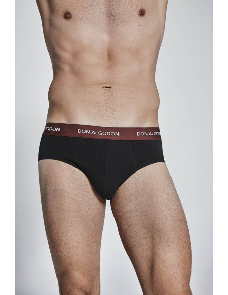 Cada slip presenta un diseño en color negro, acompañado de una cintura elástica vista con detalles en diferentes colores, que aporta un toque moderno y deportivo.