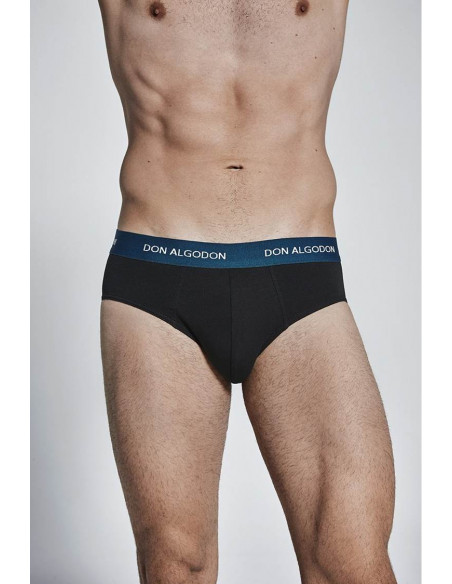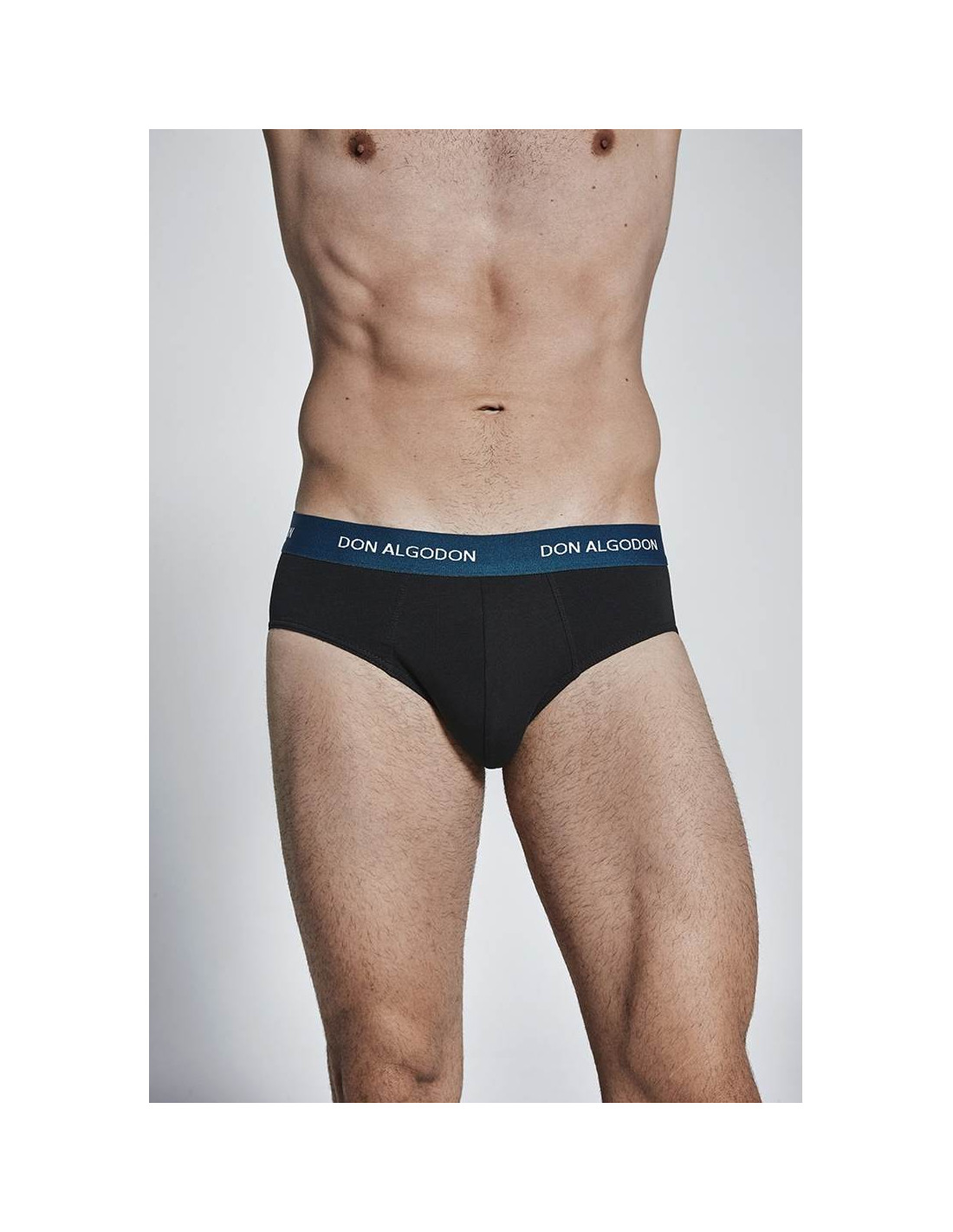 Cada slip presenta un diseño en color negro, acompañado de una cintura elástica vista con detalles en diferentes colores, que aporta un toque moderno y deportivo.