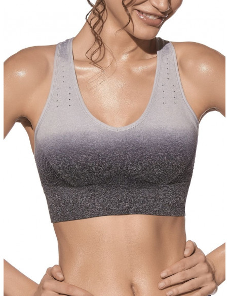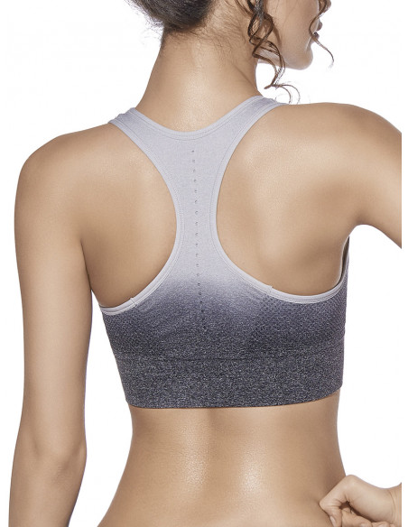 Confeccionado sin costuras, evita rozaduras y aporta una sensación suave y confortable sobre la piel. Destaca por su diseño moderno con degradado bicolor, que añade un toque actual y llamativo. Incorpora copas con relleno extraíble, permitiendo adaptar el volumen y la forma según las preferencias personales.