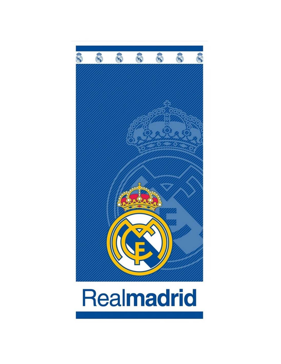 La Toalla de Playa Real Madrid de New Import es el complemento ideal para disfrutar del verano con comodidad y el estilo de tu equipo favorito.