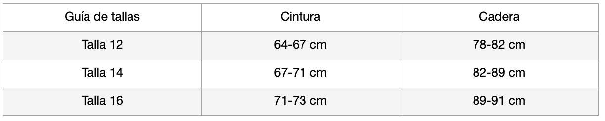 Guía de tallas: