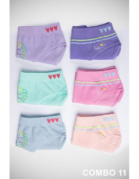 Confeccionadas en algodón elástico y presentadas en un diseño estampado de florecitas y corazones sobre diferentes colores lisos, resultan ideales para el día a día. Su estructura sin costuras proporciona una total libertad de movimiento y un extra de confort.