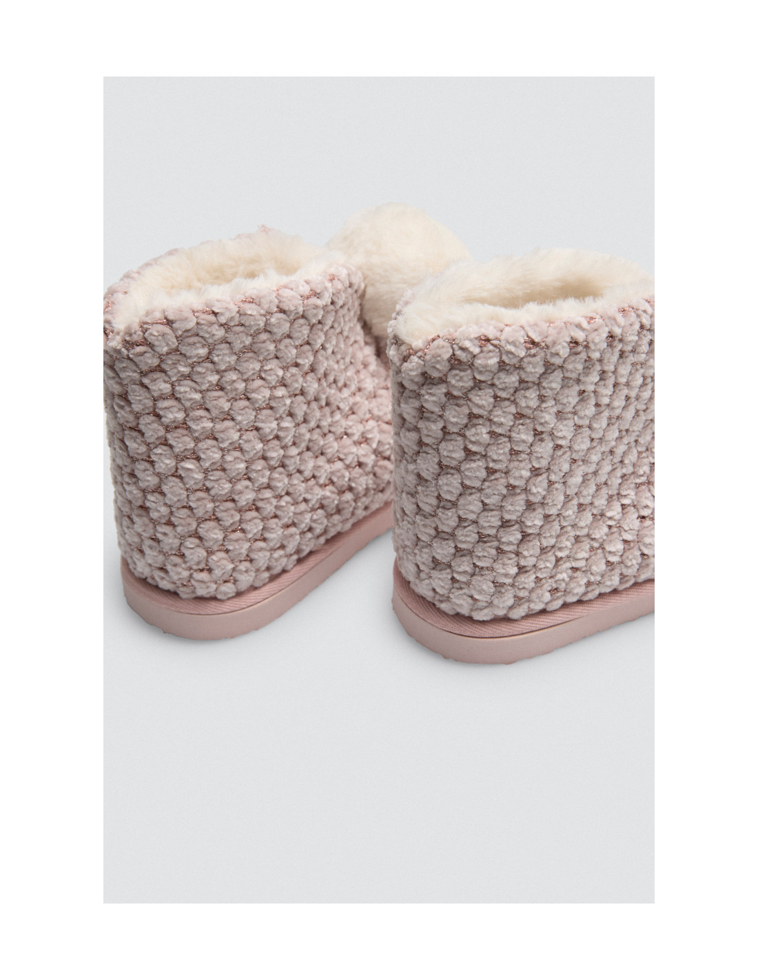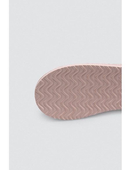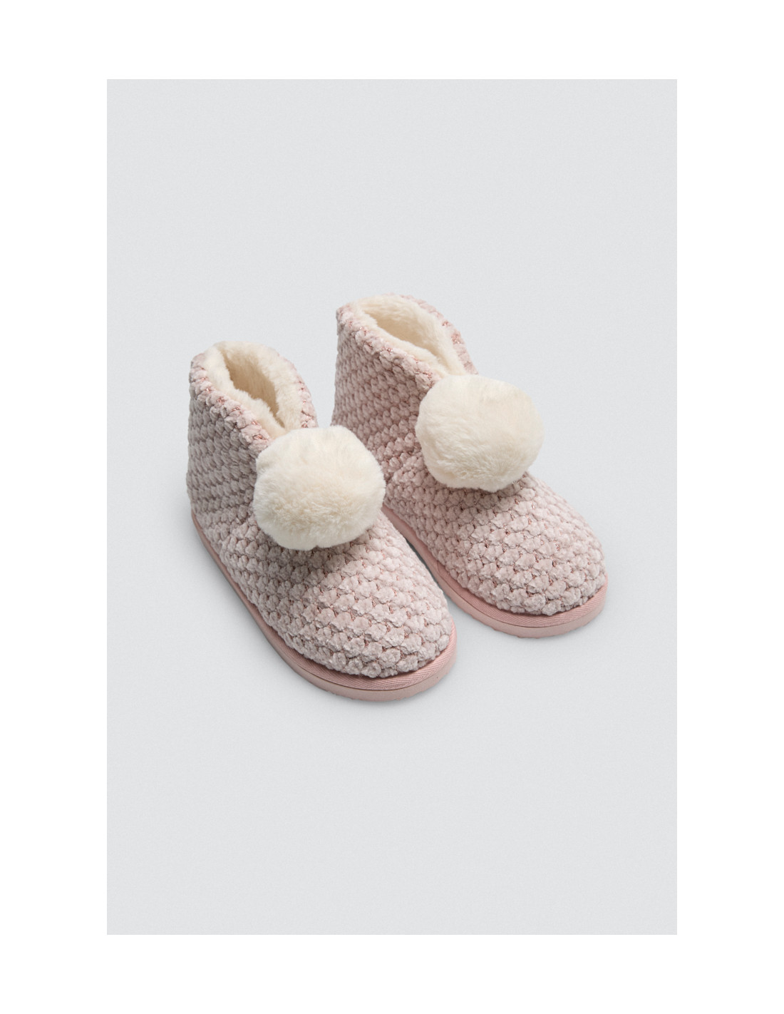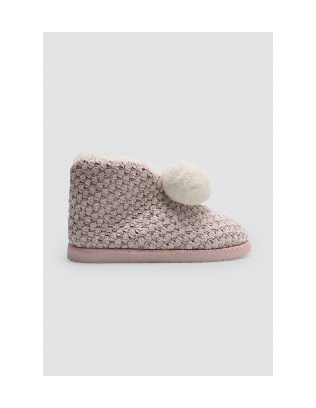 La suela de EVA ofrece durabilidad y una excelente tracción, aportando estabilidad en cada paso dentro del hogar. El estampado en textura en tonos rosados añade un toque alegre y moderno, mientras que los pompones decorativos le dan un aire coqueto y desenfadado.